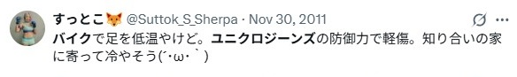 ユニクロのジーンズは、転倒時の保護性能では専門ウェアに劣るかもしれません。