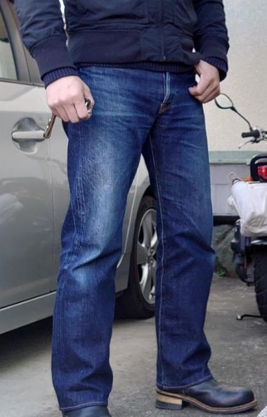 バイクを降りた後も、ユニクロのジーンズは普段着として全く違和感がありません。