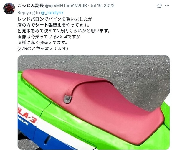 しかし、「レッドバロンにシートの張り替えを頼むと高い・・」という声が散見されます。