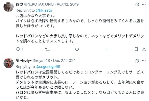 これらの店舗も、通常は提携の専門業者に外注する形を取りますが、レッドバロンよりは中間マージンが抑えられる傾向があります。