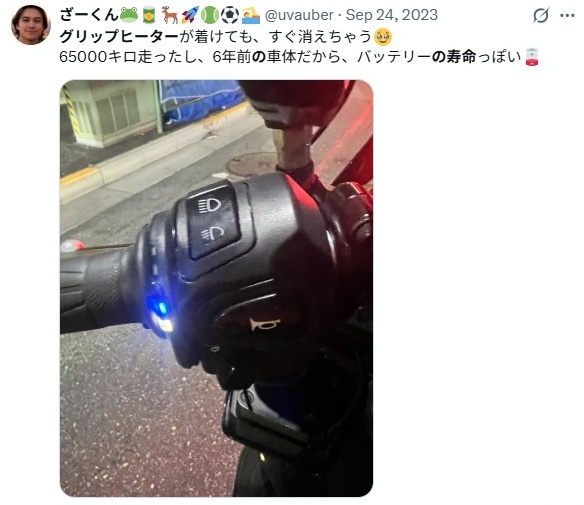 グリップヒーターは電気で動くものですから、供給元のバッテリーの状態が不安定だと、ヒーター側の制御回路に余計な負荷がかかります。