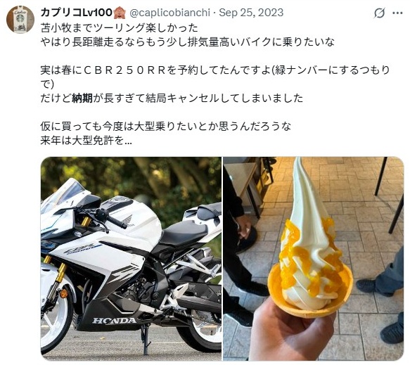 モデルC(例:CBR250RR/400R)受注再開や納期の変化