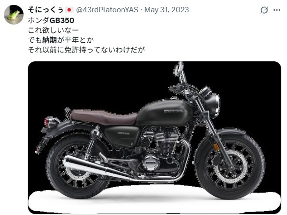 クラシカルなデザインが魅力のGB350も、長らく納期が不安定でした。