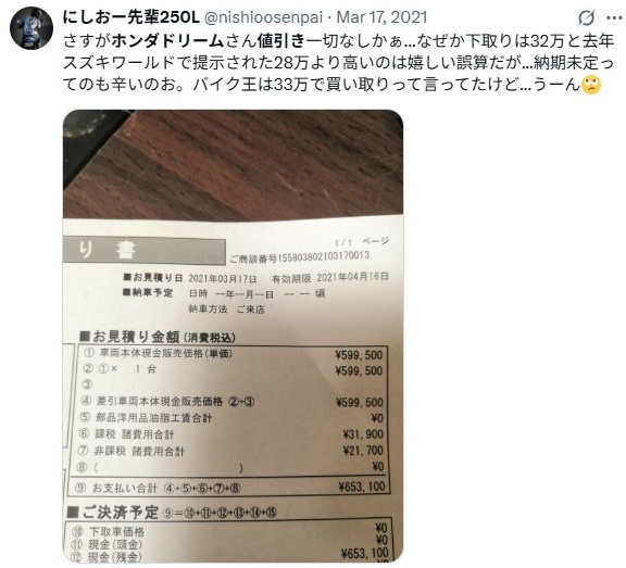 ホンダドリームの見積もりは、単なる価格表ではありません!