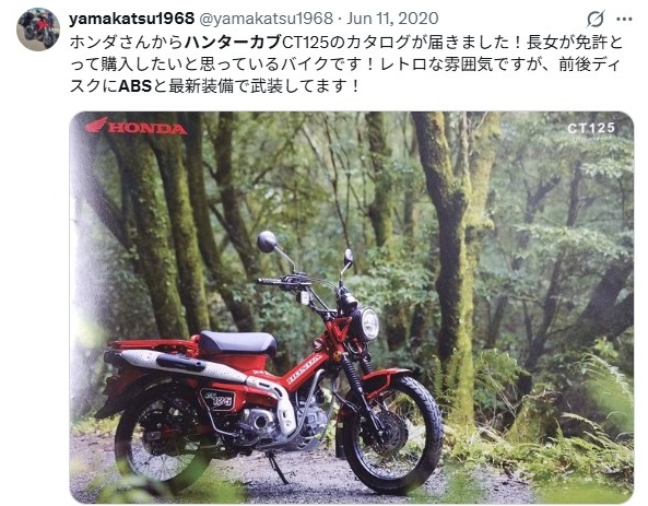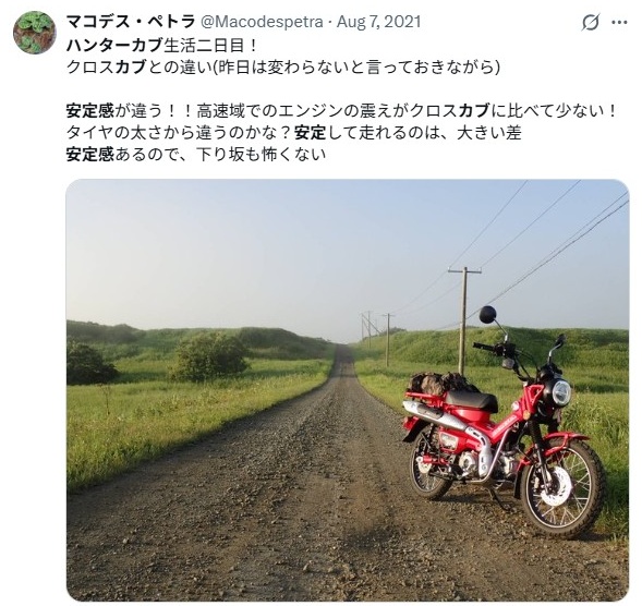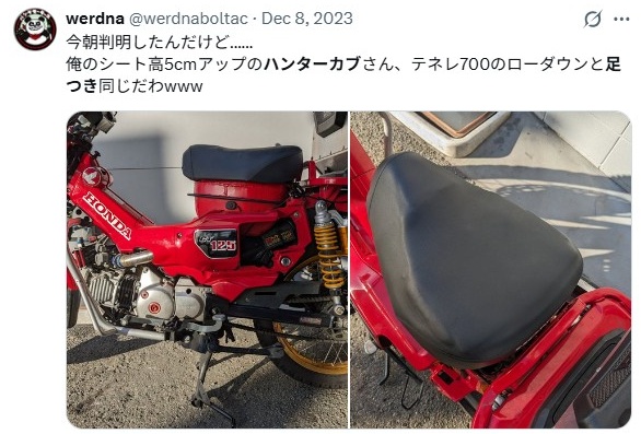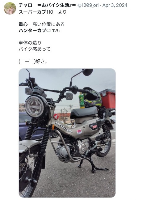 なんか余裕の猫背やった(笑)#ハンターカブ #スーパーカブ #カブ主 #バイク女子 pic.twitter.com/20xxAX8H9t— パー子 (@BP_ARMY33) June 6, 2023