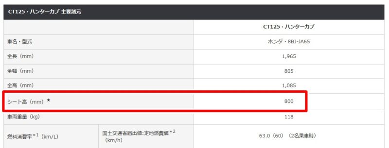 ハンターカブが初心者にとって「危ない」と感じられる最大の要因は、圧倒的な足つきの悪さにあります。