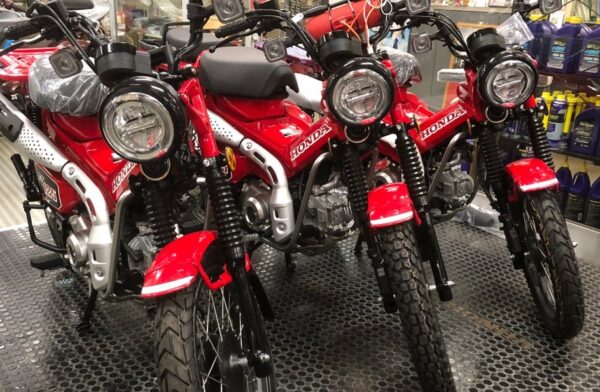 かつて海外で活躍し、日本でも逆輸入車として愛されたCT110のイメージを色濃く受け継いでいます。特徴的なのは、その鮮やかでありながらも深みのある赤色です。
