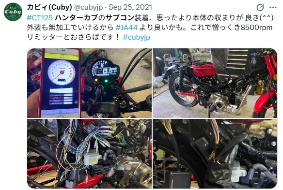 結論から言えば、ハンターカブ(JA55)にサブコン(Enigma)、ハイカム、そしてフロントスプロケットを15Tに変更したカスタム状態で、メーター読みの最高速は**「106km/h」**を記録しました!