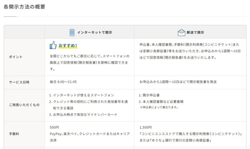 インターネットや郵送で数百円から1,000円程度の手数料を支払うことで、自分の信用情報を簡単に開示請求できます。
