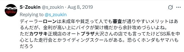 結論から言えば、カワサキプラザのバイクローン審査が他の販売店と比べて「特別に厳しい・・」わけではありません。