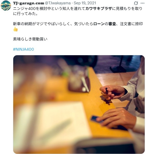 銀行で審査に通過し、その資金を現金としてプラザに持ち込めば、希望のカワサキバイクを確実に購入できます。