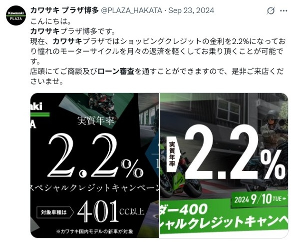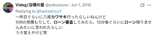 しかし、ローン審査を行っているのはカワサキプラザではなく提携の信販会社であるため、販売店からは直接的な審査落ちは聞けないことの理解が必要です。