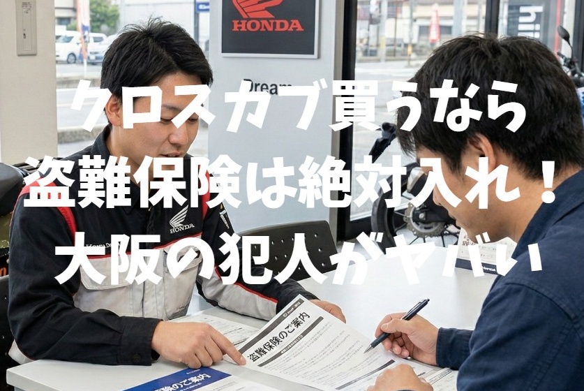 クロスカブ110を新車で購入する場合、まず検討すべきはホンダドリームなどの正規販売店が提供している盗難保険です。