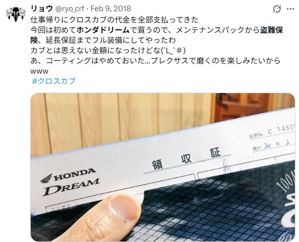 こうした救いようのない現実を踏まえると、私が主張している「盗難保険は絶対入れ!」という言葉は、単なる推奨ではなく、クロスカブライフを継続するための生存戦略である!
