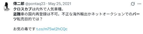 これは単なる散発的な窃盗ではなく、特定の人気車種を効率よく現金化するための「クロスカブ狩り」が行われている!