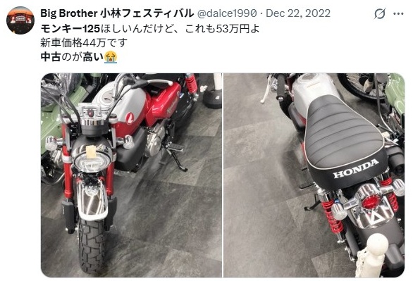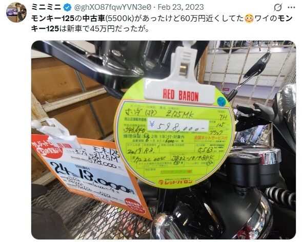 モンキー125の価値が上がり新車より中古が高い逆転現象・・