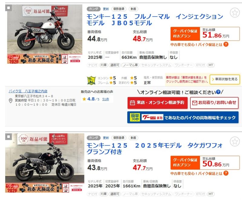 すべてのモンキー125が一律に高騰しているわけではありません。