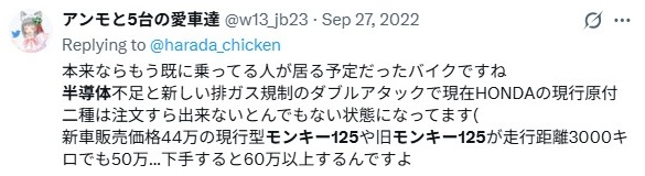 モンキー125の中古車価格が新車価格を追い越してしまった最大の要因は、やはり新車の供給不足にあります。