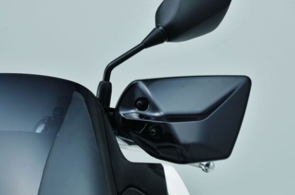 風の整流効果を考慮したエアロデザインとなっており、高い防風性能を発揮しながらも、走行風によるハンドルのブレを最小限に抑えています。