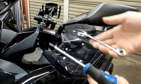 実際の取り付け手順ですが、まずは左右のバックミラーを取り外します。
