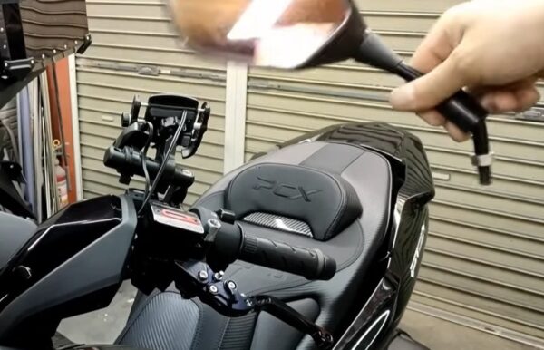 PCXオーナーに最もおすすめなのは、ミラーの根元にステーを挟み込んで固定する「ミラー共締めタイプ」です。