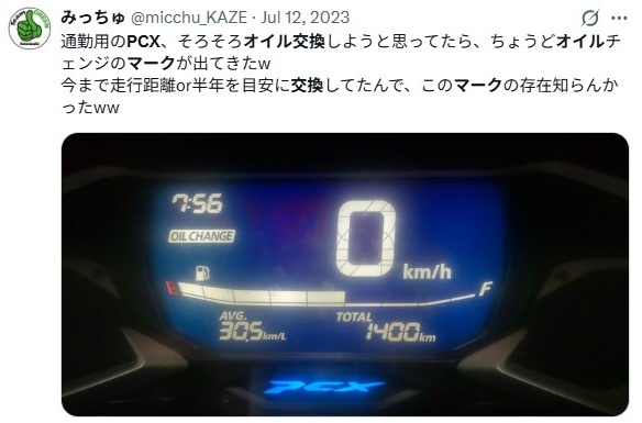 PCXに乗っていて、メーターパネルに見慣れない「OIL CHANGE」という文字やランプが点灯しているのを見て、ドキッとした経験はないか?