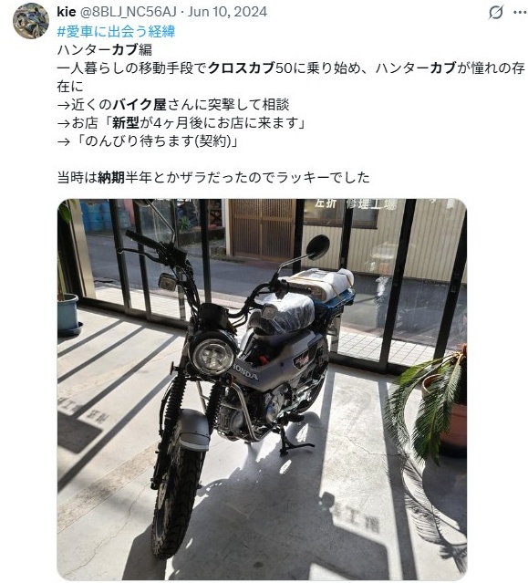 特にハンターカブは生産体制が強化されており、時期によってはクロスカブよりも在庫が潤沢にある場合があります。