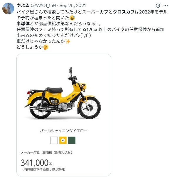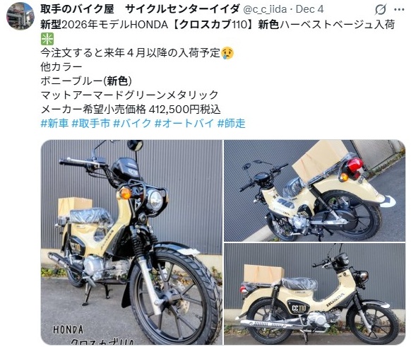 - 【随時更新】新型クロスカブの最新納期・予約状況