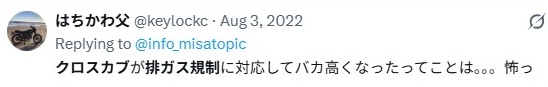残念ながら2026年モデルのクロスカブに関しても、現行価格からの値上げが行われる可能性が高いです。