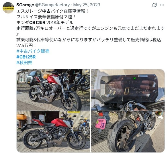 - 新基準原付版CB125Rの中古がもし出たら?相場は?