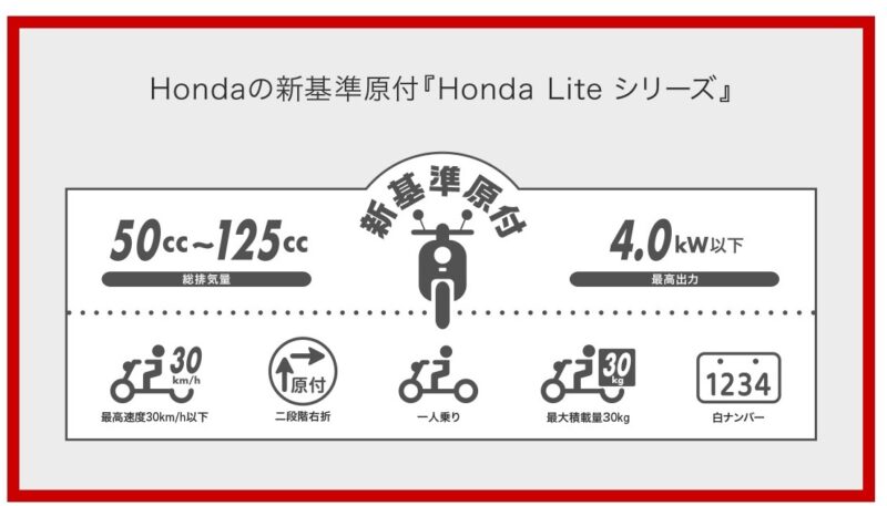 | スーパーカブ110 Lite | 新基準原付(原付一種) | 30km/h | 30km/h制限 |