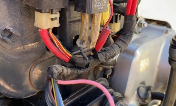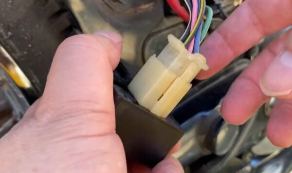スーパーカブ110 LiteのECUは、車体のサイドカバー内部やシート下などに設置されていることが多いため、サービスマニュアルを参照して場所を特定します。純正ECUに接続されている配線のカプラーを慎重に抜き取ります。