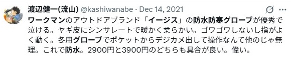 しかし、一昨年、どうしても試してみたくなったワークマンの最強防寒手袋「イージス防水防寒グローブ」に、完全に心を奪われ、そしてその性能に打ちのめされました。