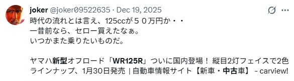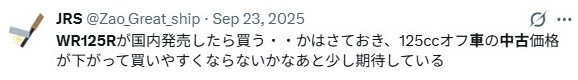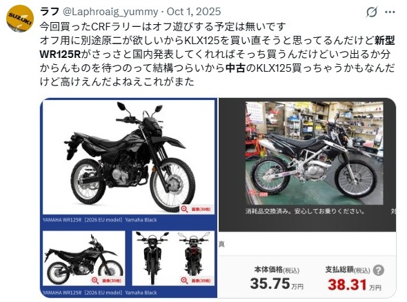 - まずは2026新型WR125Rの中古車相場を見てみよう