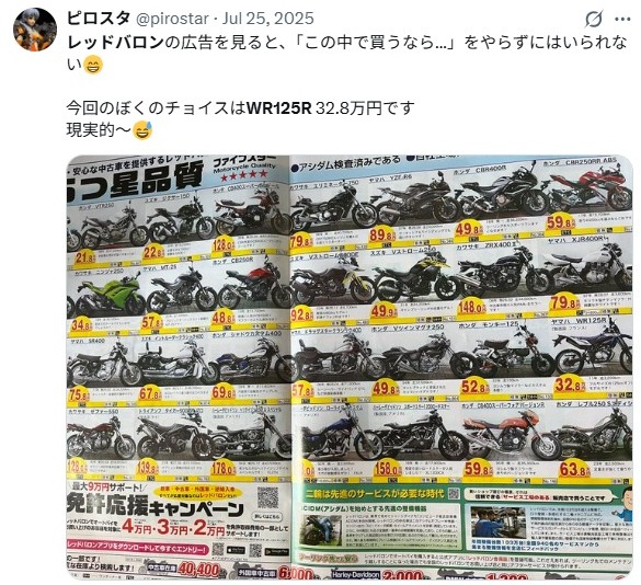 新型WR125Rの中古が欲しい場合はレッドバロンが最適か?