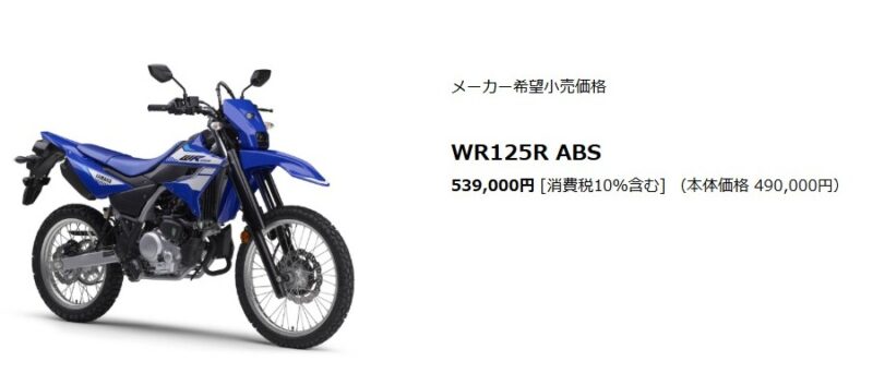 2026年、新型WR125Rの新車価格は車両本体価格で53.9万円に設定されています。