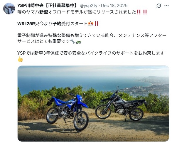 - 【2026最新】新型WR125Rの予約&受注状況!